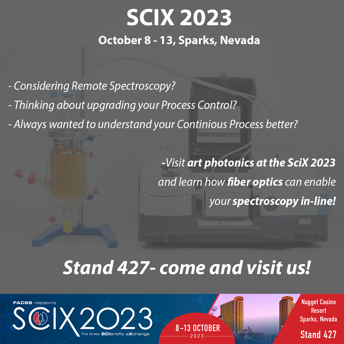 Besuchen Sie uns auf der Konferenz SciX 2023, die vom 8. bis 13. Oktober in Sparks, Nevada, stattfindet. art photonics lädt Sie ein, die bahnbrechenden Möglichkeiten der Prozesskontrolle und Spektroskopie durch Glasfasertechnologie zu erkunden.