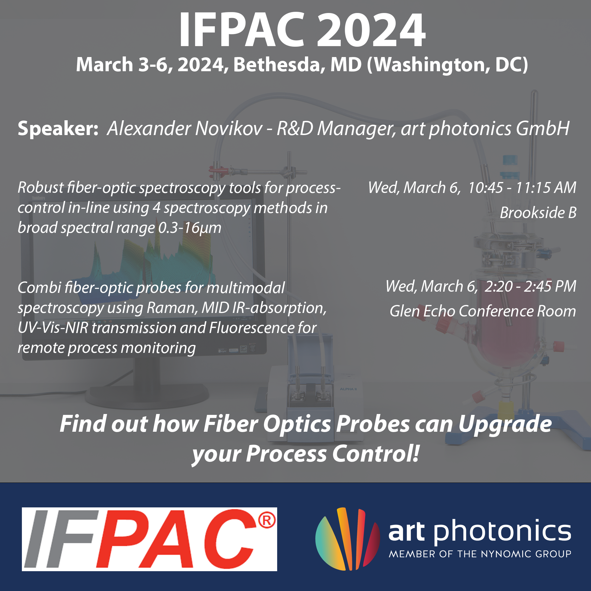 Discover the potential of fiber optics in advancing your PAT processes with Art Photonics at IFPAC 2024.