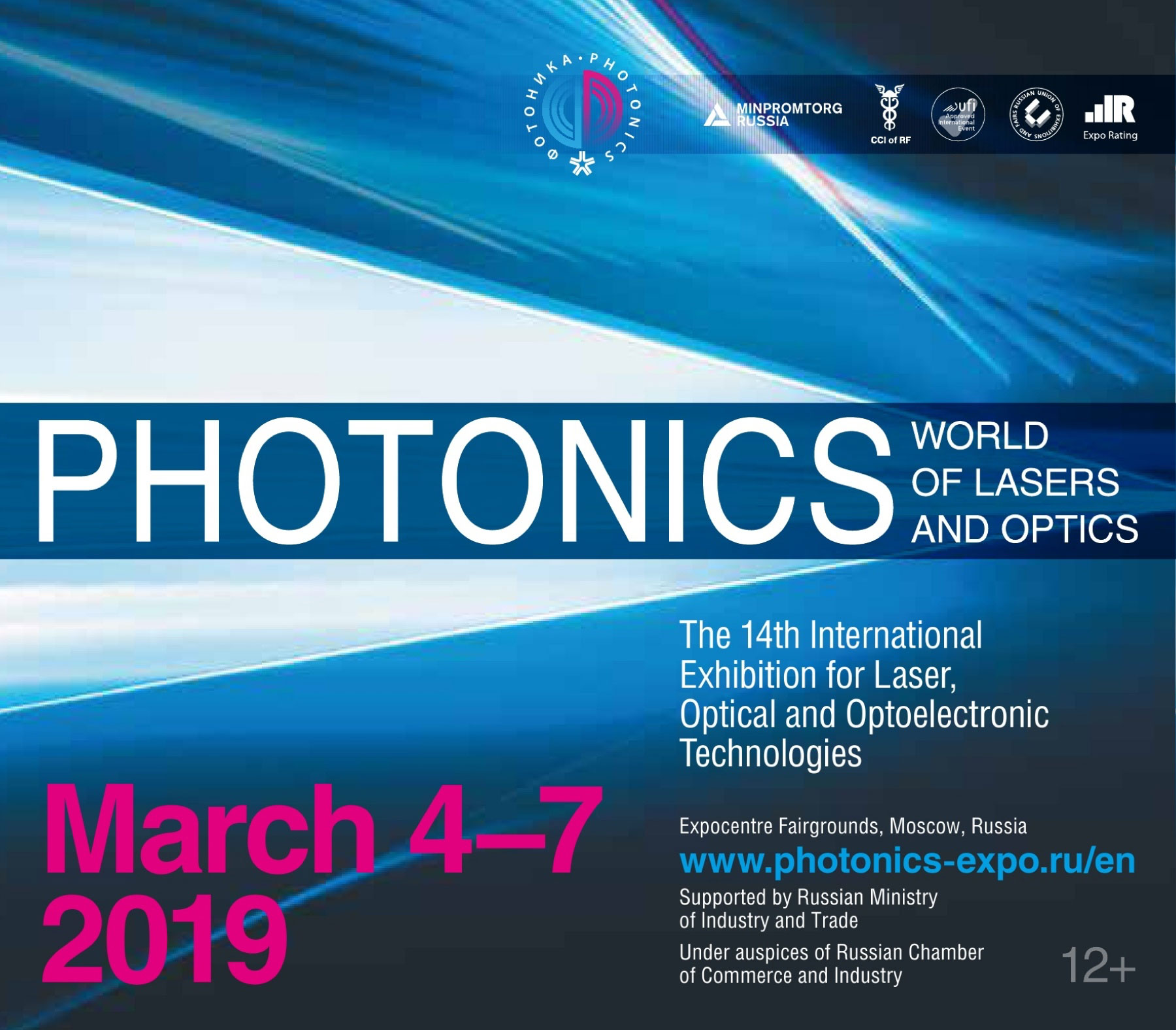 You are very welcome to visit our Booth 75C12 at German Pavilion during the 14th International Specialized Exhibition for Optical, Laser and Optoelectronic Technologies “Photonics. World of lasers and optics 2019” – the great event for the photonics industry, which will run on 4 – 7 March, 2019 in Moscow, Russia.