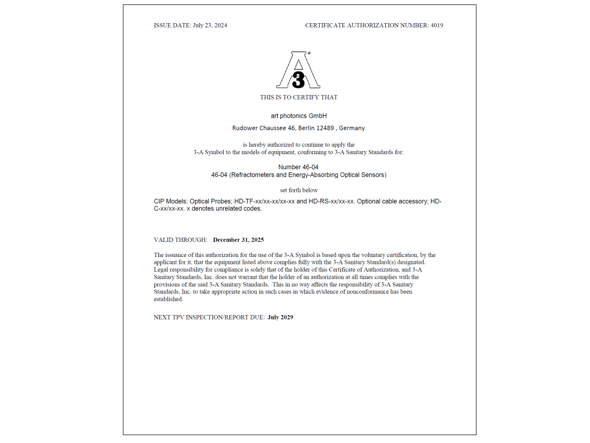 FlexiSpec® product line includes the latest generation of Transflection Dual Pass fiber optic probes to be used with any spectrometer or photometer  in any part of UV –Vis or Vis – NIR spectra.  3A-certified  Transflection Probe is developed by artphotonics for  measurements with the highest hygienic requirements in the pharmaceutical and food industries.