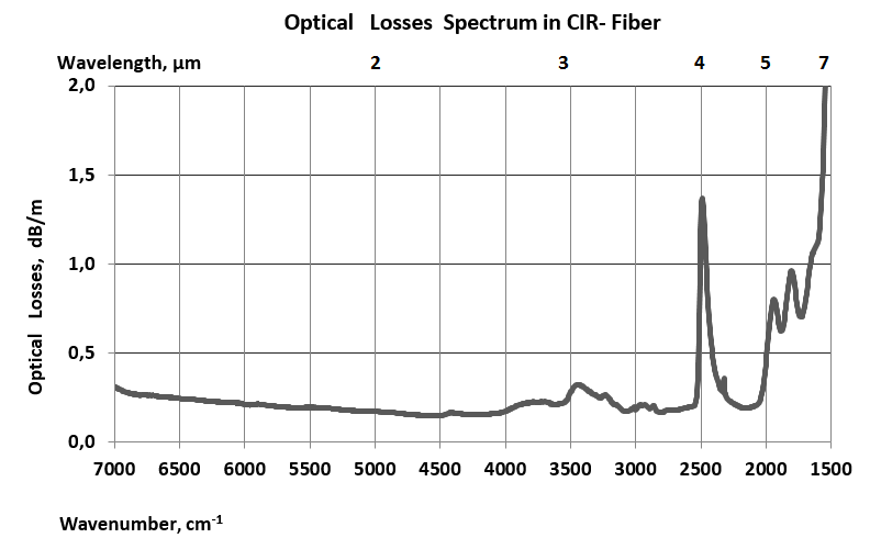 • Low optical losses 0.2 – 0.3 dB/m at 2.5 – 4 μm and 4.5 – 5 μm